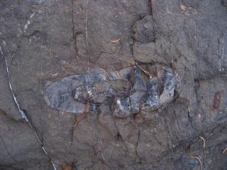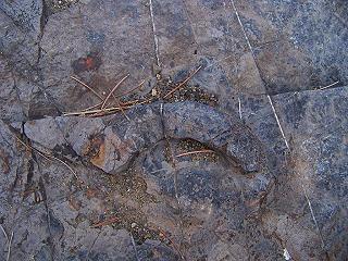 | Plant Stem Impression High Resolution Image Location: Chiricahua Mountains Age: Late Jurassic Formation: Crystal Cave | ![]() |