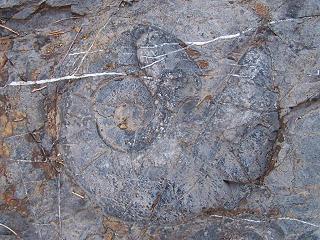 | Phylum: Mollusca SubClass: Ammonoidea Class: Cephalopoda Order: Ammonitida Ammonite (Cross Section) High Resolution Image Location: Chiricahua Mountains Age: Late Jurassic Formation: Crystal Cave | ![]() |