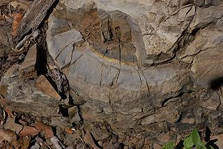 | Plant Stem Impression High Resolution Image Location: Chiricahua Mountains Age: Late Jurassic Formation: Crystal Cave | ![]() |