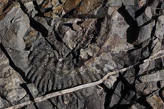 | Phylum: Mollusca SubClass: Ammonoidea Class: Cephalopoda Order: Ammonitida Ammonite High Resolution Image Location: Chiricahua Mountains Age: Late Jurassic Formation: Crystal Cave | ![]() |