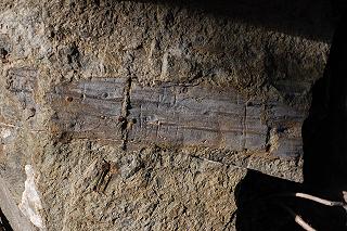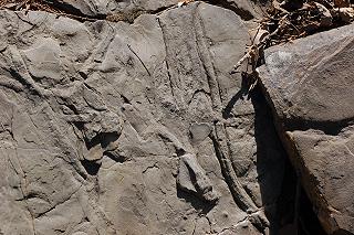 | Trace Fossils (Animal Burrows?) High Resolution Image Location: Chiricahua Mountains Age: Late Jurassic Formation: Crystal Cave (Basin Trail Member) | ![]() |