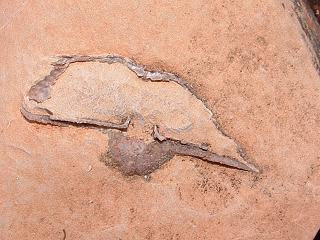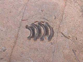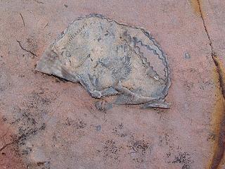| Phylum: Brachiopoda Class: Articulata Order: Spiriferidea Location: Near Sonoita AZ. Age: Pennsylvanian/Permian Formation: Earp | ![]() |
