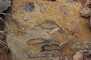 | Phylum: Mollusca Class: Bivalvia (Pelecypoda) Bivalve Oyster Shells? High Resolution Image Location: Near Sonoita Arizona Age: Early Cretaceous Formation: Mural Limestone | ![]() |