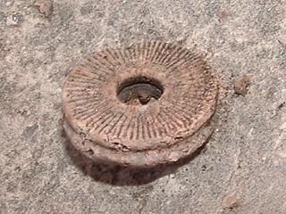 | Phylum: Echinodermata Class: Crinoidea Crinoid Stem Location: Near Sonoita Az. Age: Permian Formation: Colina Limestone | ![]() |