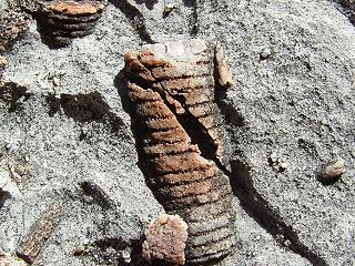| Phylum: Echinodermata Sea Urchin Spine Location: Near Sonoita Az. Age: Permian Formation: Colina Limestone | ![]() |