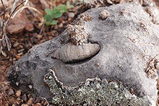 | Phylum: Brachiopoda Brachiopod with articulated spines Location: Near Sonoita Az. Age: Permian Formation: Colina Limestone High Resolution Image | ![]() |