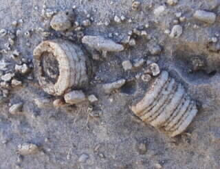 | Phylum: Echinodermata Class: Crinoidea Crinoid Stems Location: Near Sonoita Az. Age: Permian Formation: Colina | ![]() |