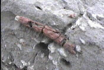 | Phylum: Echinodermata Subphylum: Echinozoa Class: Echinoidea Sea Urchin Spine Location: Near Sonoita Az. Age: Permian Formation: Colina In places, this formation appears to made of Sea Urchin Spines | ![]() |